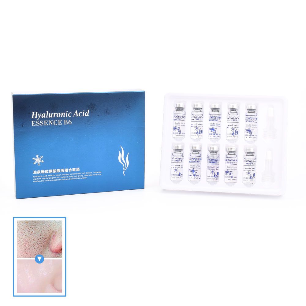 Kit de ampollas con ácido hialurónico y aminoácidos para hidratación profunda y volumen en pieles secas o sensibles. Ideal para tratamiento intensivo.