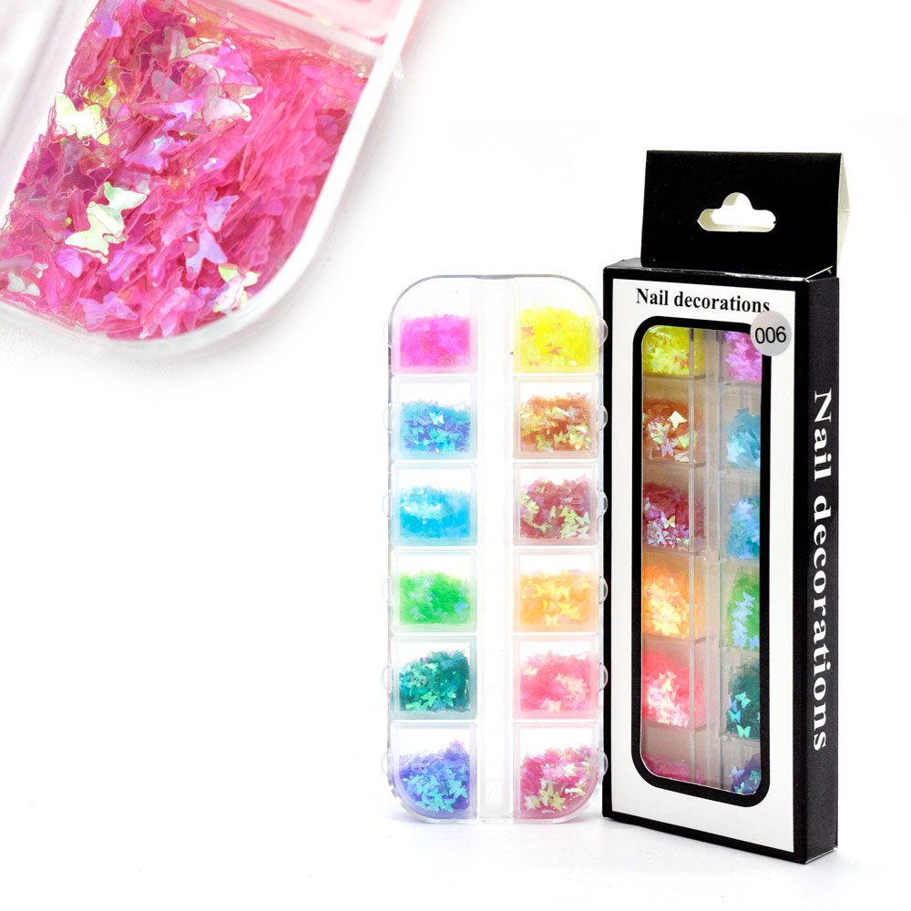 Kit de apliques para uñas con mariposas de colores x8 piezas