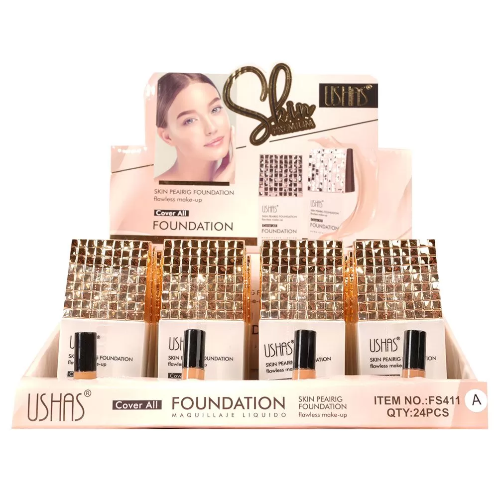 Base líquida de alta cobertura – Ushas larga duración y acabado matte, de formula ligera para lograr un acabado uniforme en el rostro. Ideal para todo tipo de pieles.