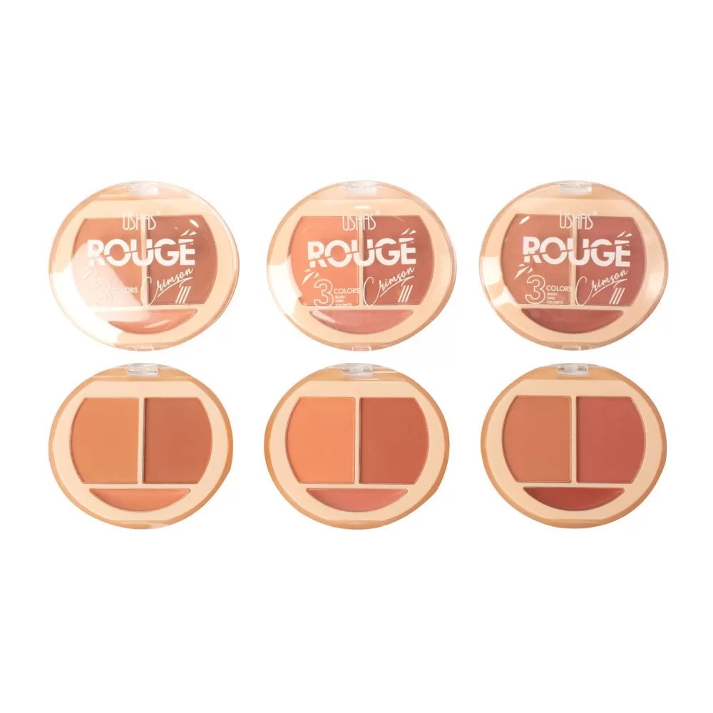Blush Rouge 3 tonos – Ushas paleta de rubores de 3 colores. Tamaño compacto. Ideal para poder llevar a cualquier lugar que necesites.