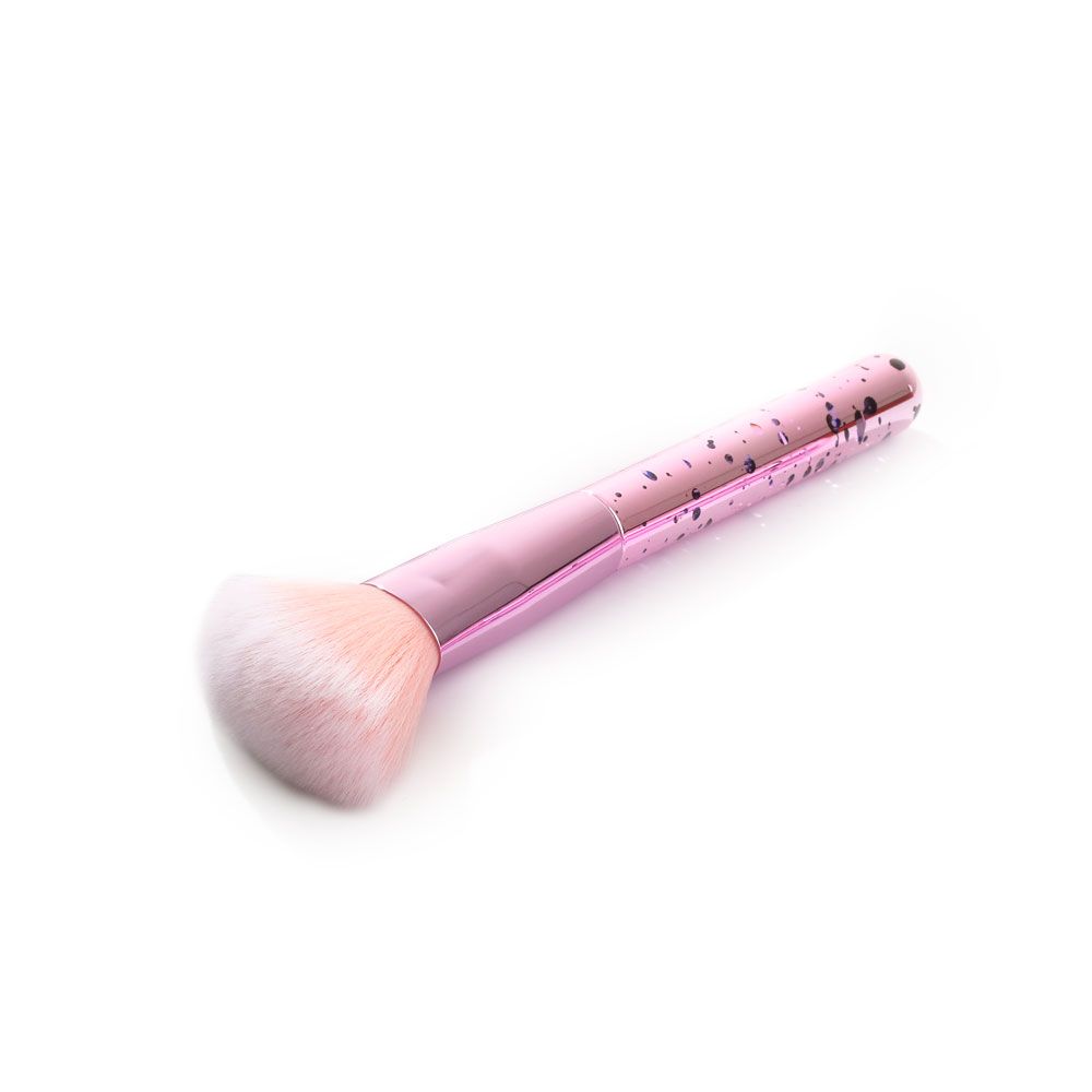 Brocha para rubor profesional de fibra sintética ideal para aplicación precisa y uniforme en mejillas. Diseño ergonómico para maquillaje impecable.