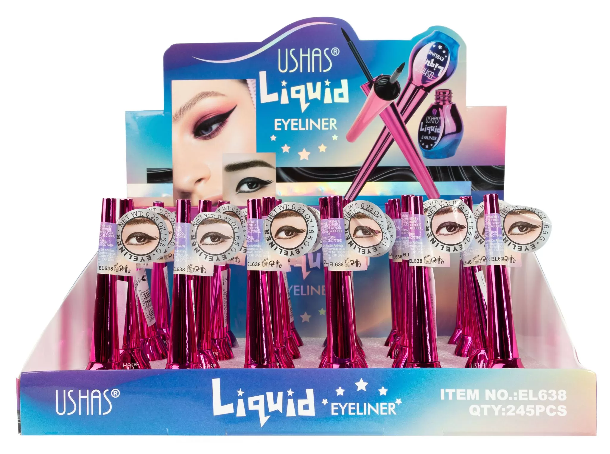 Delineador líquido punta fina negro – Ushas líquido de color negro, de pincel en su final grueso y punta fina, ideal para un mejor manejo del pincel al realizar tus delineados.