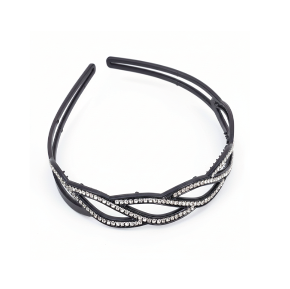 Añade un toque de glamour a cualquier peinado con esta diadema negra de diseño único. Fabricada en plástico duradero, presenta una sección frontal decorativa con un elegante patrón de doble onda.
