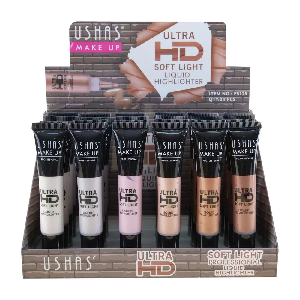 Ilumnador líquido 6 tonos – Ushas x 12 brinda un color vibrante y único en tu rostro. Con delicados y fascinantes destellos. Suave aplicación que consiente tu piel.