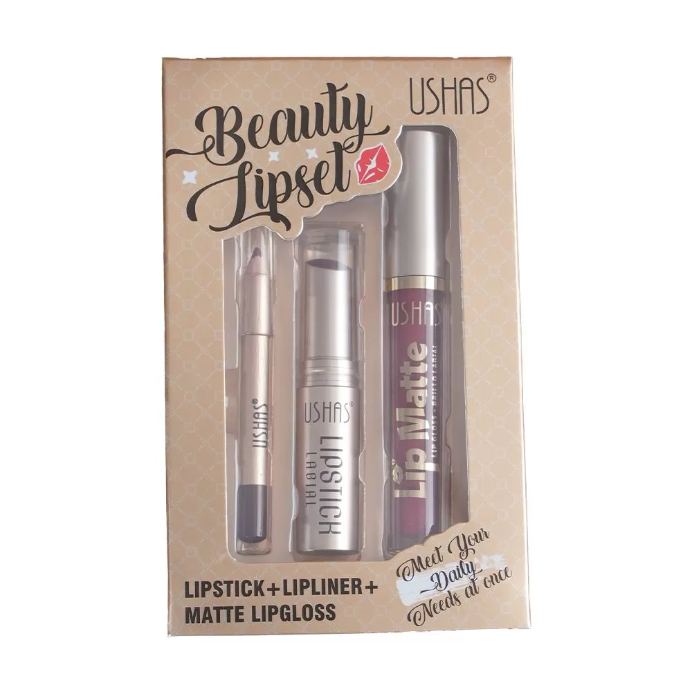Descubre el Lip Set 3 en 1 de Ushas, la combinación ideal para unos labios definidos, hidratados y con un color vibrante. Este set incluye labial cremoso, brillo gloss y delineador, permitiéndote crear desde un look natural hasta uno audaz y sofisticado.