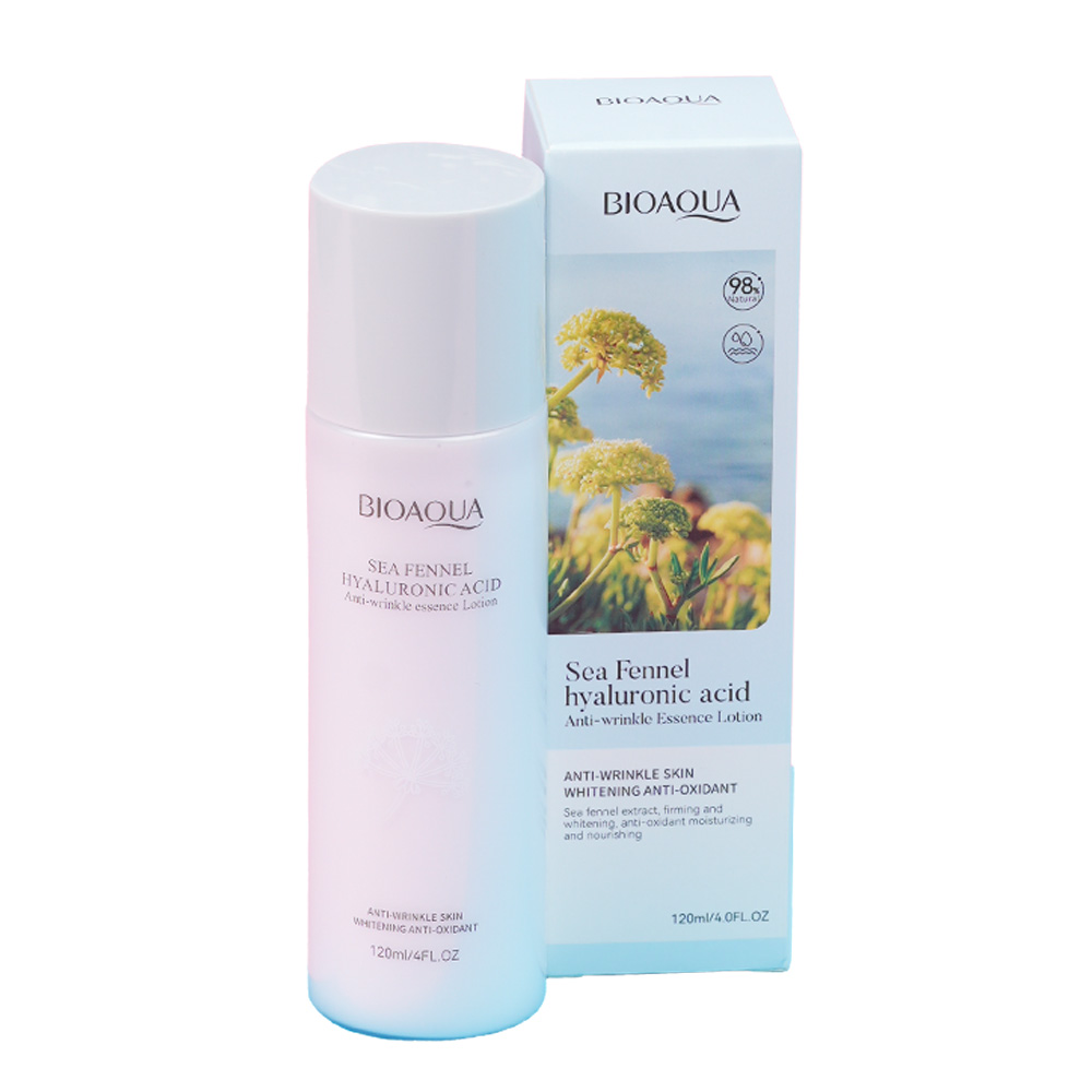 Presentamos la Sea Fennel Hyaluronic Acid Anti-wrinkle Essence Lotion de BIOAQUA, una fórmula avanzada que combina el extracto marino de Hinojo de Mar (Sea Fennel) con la potente hidratación del Ácido Hialurónico. Esta loción esencia es tu aliada clave en la lucha contra los signos del envejecimiento, ofreciendo múltiples beneficios en un solo paso.