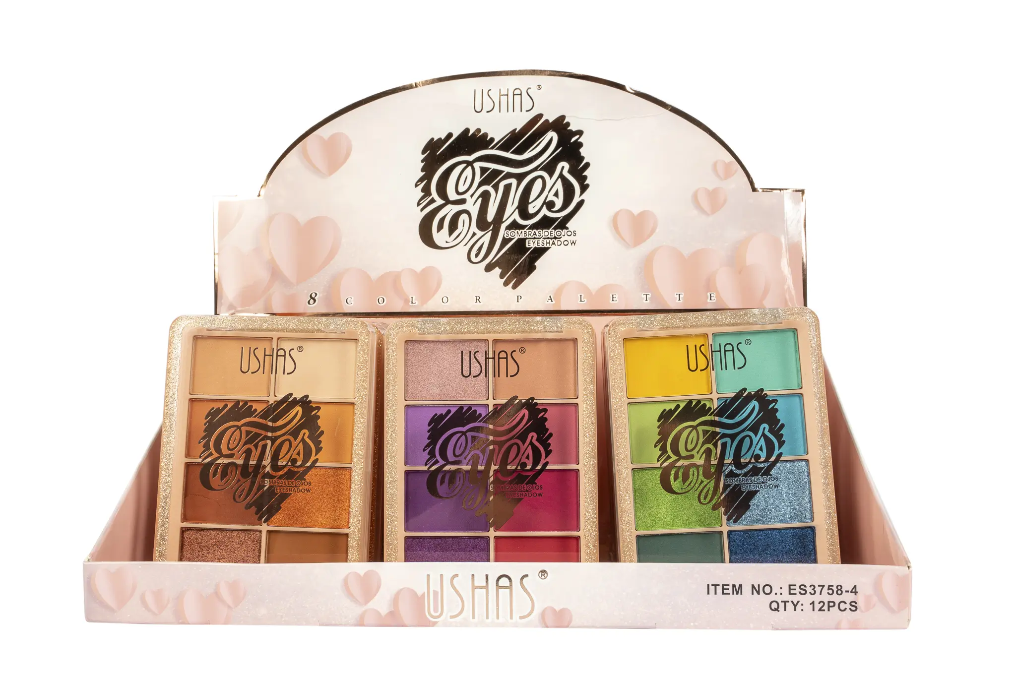 Paleta de sombras Eye 3 tonos – Ushas (x12) es un producto de maquillaje que ofrece una amplia variedad de colores y tonos para crear una variedad de looks de ojos.