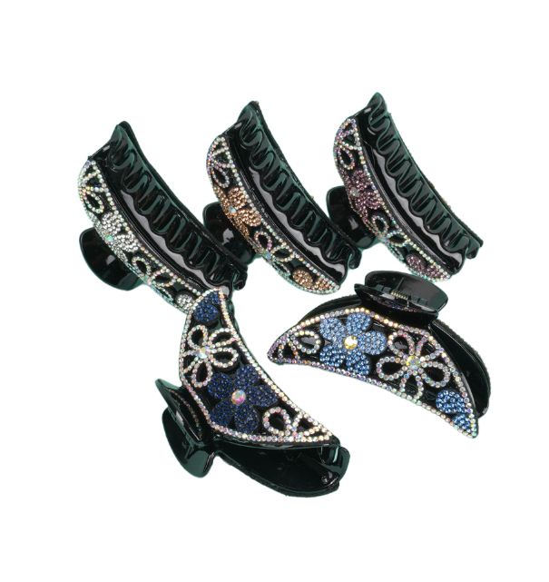 Eleva cualquier moño recogido con estas impresionantes Pinzas Tipo Garra ‘Media Luna Diamante’. Su diseño curvo y elegante está completamente cubierto de pedrería, ofreciendo un brillo deslumbrante que es perfecto para el día y la noche.
