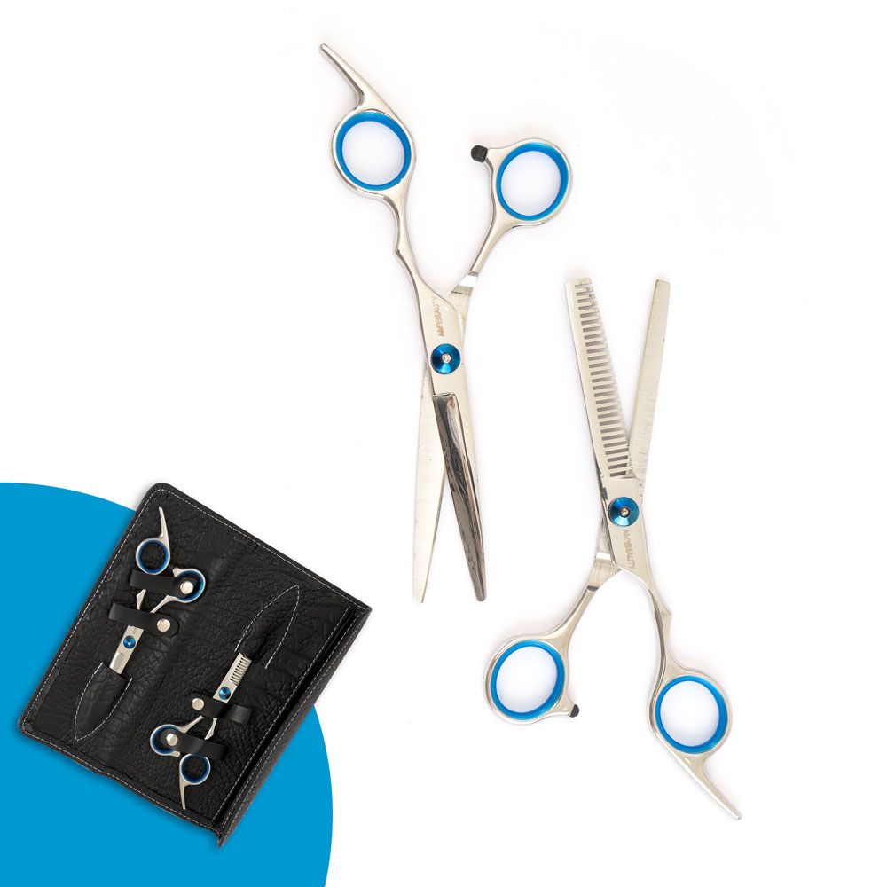 Este set de herramientas de peluquería incluye tijeras diseñadas para ofrecer cortes precisos y seguros, ideales tanto para mascotas como para cabello humano. Su filo dulce garantiza un acabado suave sin dañar el pelaje o cabello.