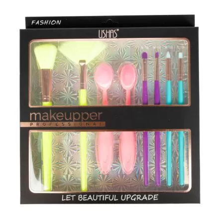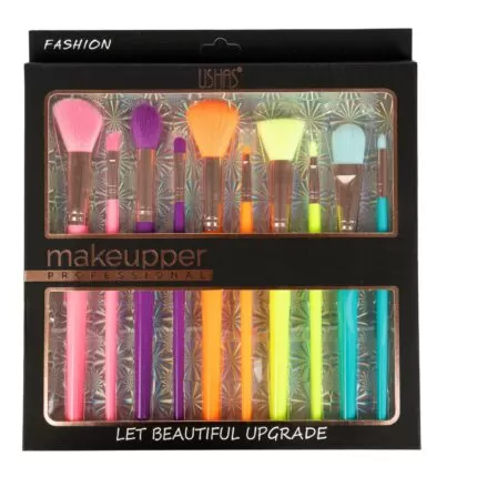 Set de brochas X10 NEON - USHAS es una colección vibrante y versátil que ofrece una amplia gama de herramientas para tus necesidades de maquillaje.